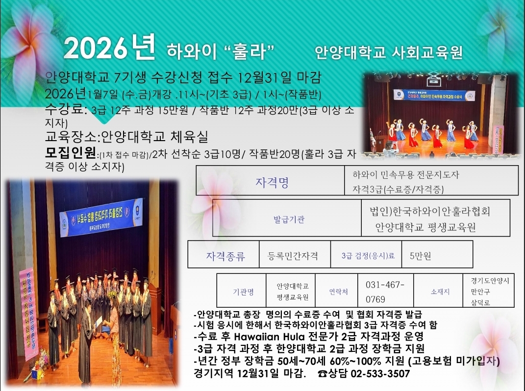 안양대학교 평생교육원이 그 꿈을 응원합니다.
